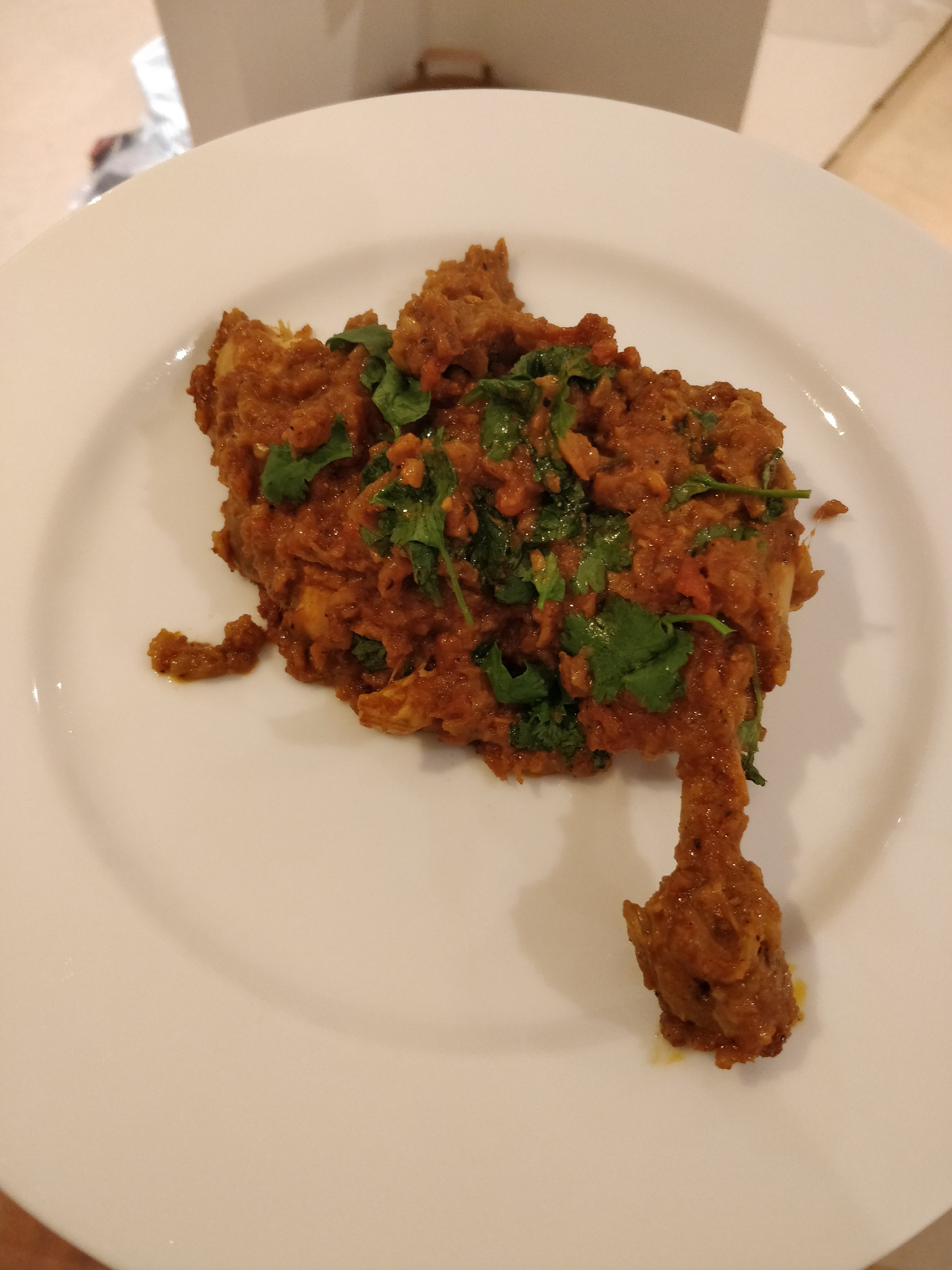 This was particularly true when I cooked chicken curry. The first time I cooked it, it was a weekday afternoon, and I was busy in work and the cooking was packed into my lunch break. Later, I cooked the recipe again on a relaxed evening, with music on. The onions were cooked until brown, the spices added without hesitation, and the chicken cooked slowly.
